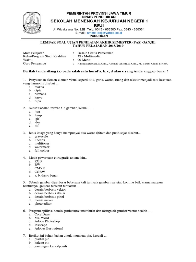 Soal desain grafis percetakan kelas 11 semester 1. Soal Ulangan Desain Grafis Percetakan Kelas 11 Semester 2 Kunci Dunia Free Pdf Latihan Soal Multimedia Kelas 11 Beserta Jawabannya Templatekita Com Soal Dan Jawaban. Itulah sedikit gambaran mngenai apa itu desain grafis langsung saja kita menuju soal dari pada desain grafis itu sendiri dan tentunya saya juga sudah menyediakan jawabannya supaya teman2 semua bisa lebih mudah utuk mempelajarinya. Soal produktif multimedia kelas xi ini terdiri dari 30 soal pilihan ganda dari mata pelajaran desain grafis percetakan kelas xi.