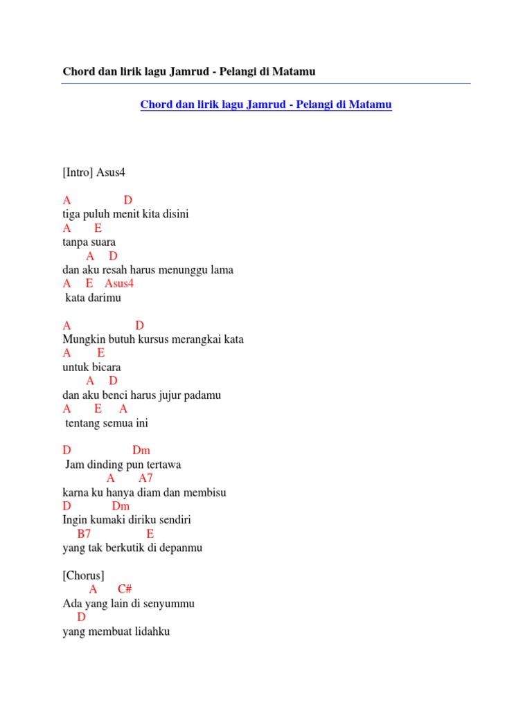 A-Asus-A-Asus A Dm A E 30 menit kita di sini tanpa suara. Chord lagu Pelangi di Matamu Jamrud. Chord Gitar Chord Gitar Lagu Pelangi di Matamu - Jamrud dari Kunci C.