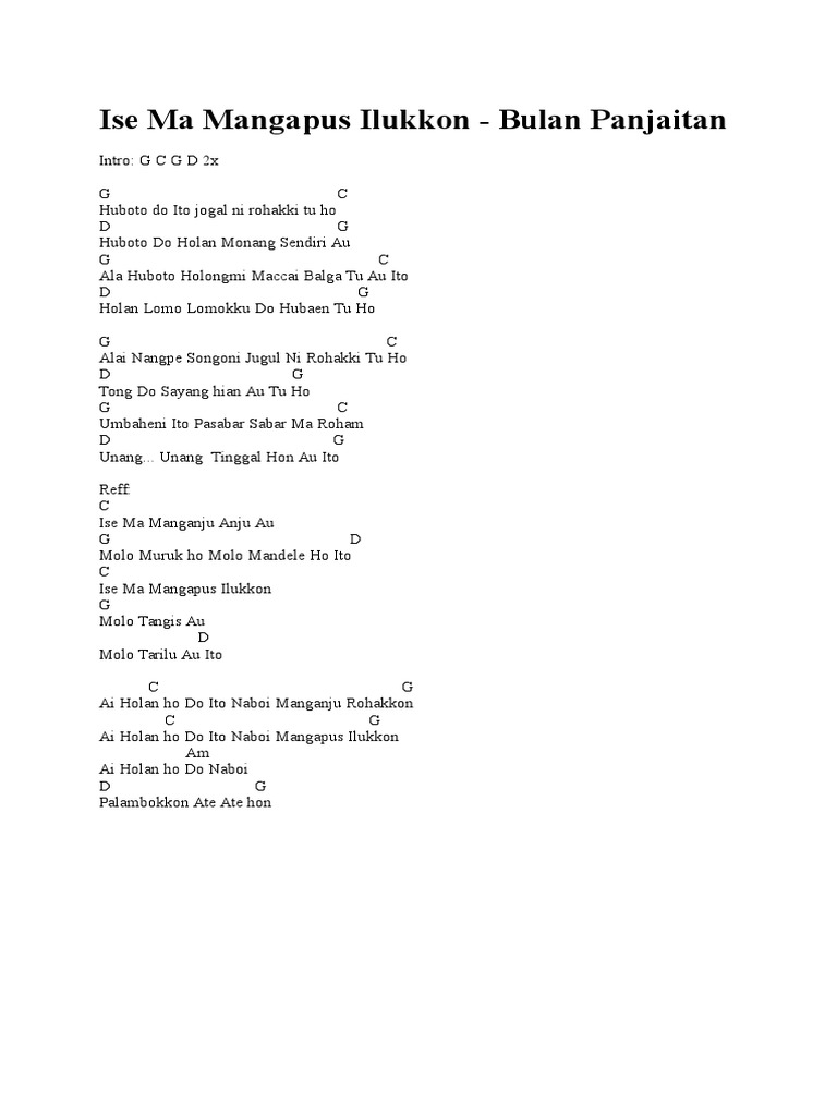 Chord Gitar Ise Mangapus Ilukkon Bulan Panjaitan Hitabatak Com